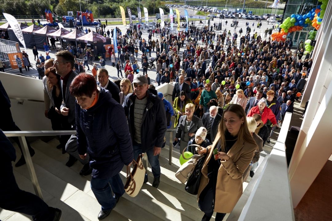 Pasākuma sākās ar svinīgajām uzrunām, kad klātesošos sveica Rēzeknes pilsētas domes priekšsēdētājs Aleksandrs Bartaševičs, Latvijas Republikas Izglītības un zinātnes ministre Ilga Šuplinska, Latvijas Olimpiskās komitejas prezidents Žoržs Tikmers, būvfirmas SIA “Arčers” valdes locekle Maija Baltgalve, SIA “Olimpiskais centrs Rēzekne” valdes locekļi Jekaterina Meirāne un Vladimirs Bogdanovs, Saeimas deputāti Ivans Ribakovs un Edmunds Teirumnieks, kā arī Rēzeknes tehnoloģiju akadēmijas rektore Iveta Mietule. Tāpat arī klātesošos uzrunāja Rēzeknes – Aglonas diacēzes bīskaps Jānis Bulis un Rēzeknes Svētās Dievmātes piedzimšanas baznīcas pārzinis, virspriesteris Viktors Teplovs, kuri jauno būvi iesvētīja.
