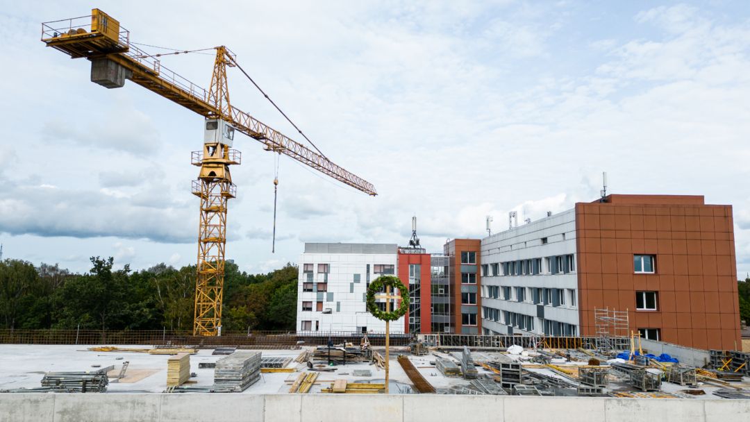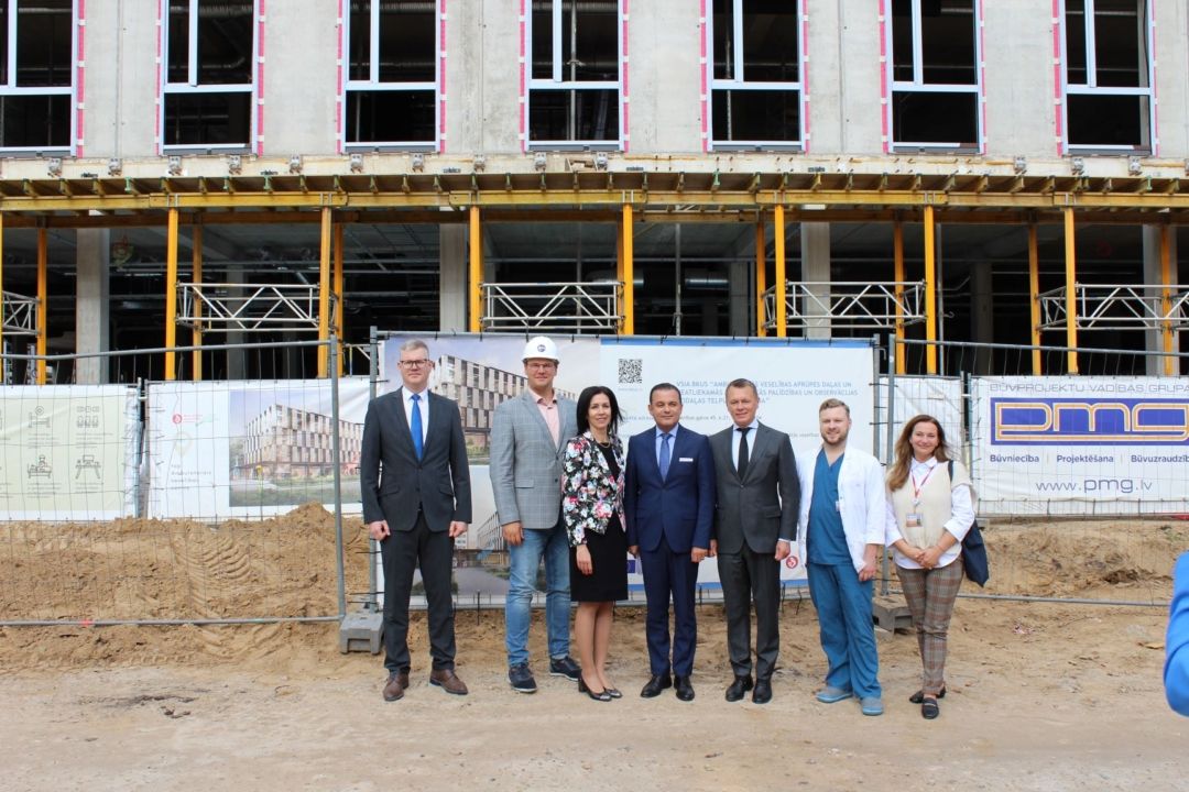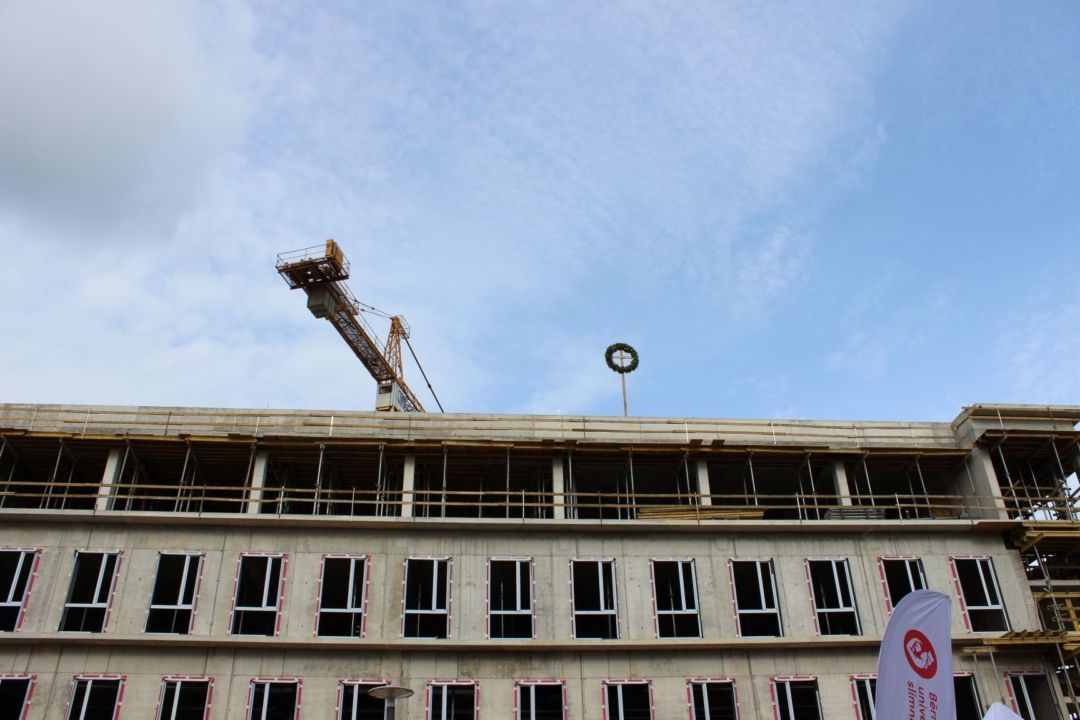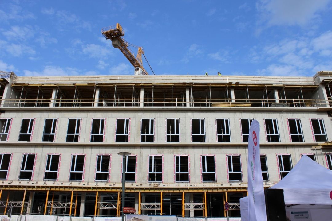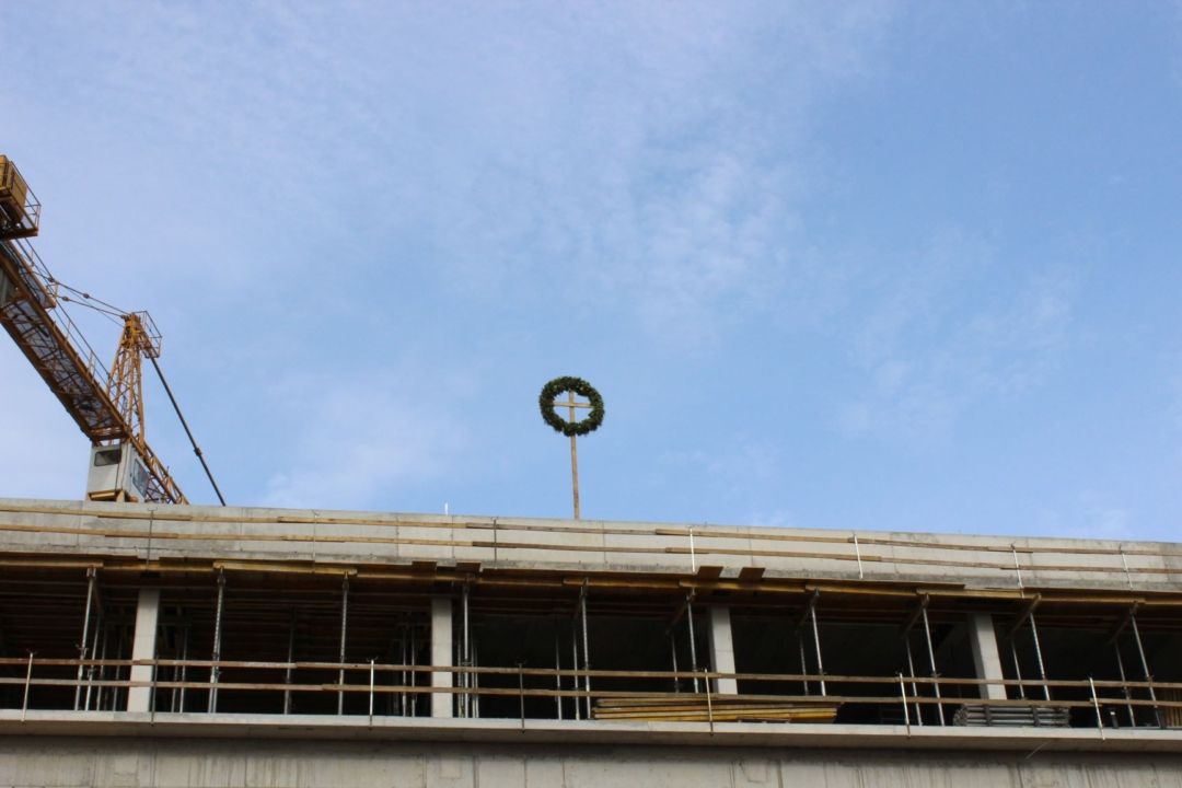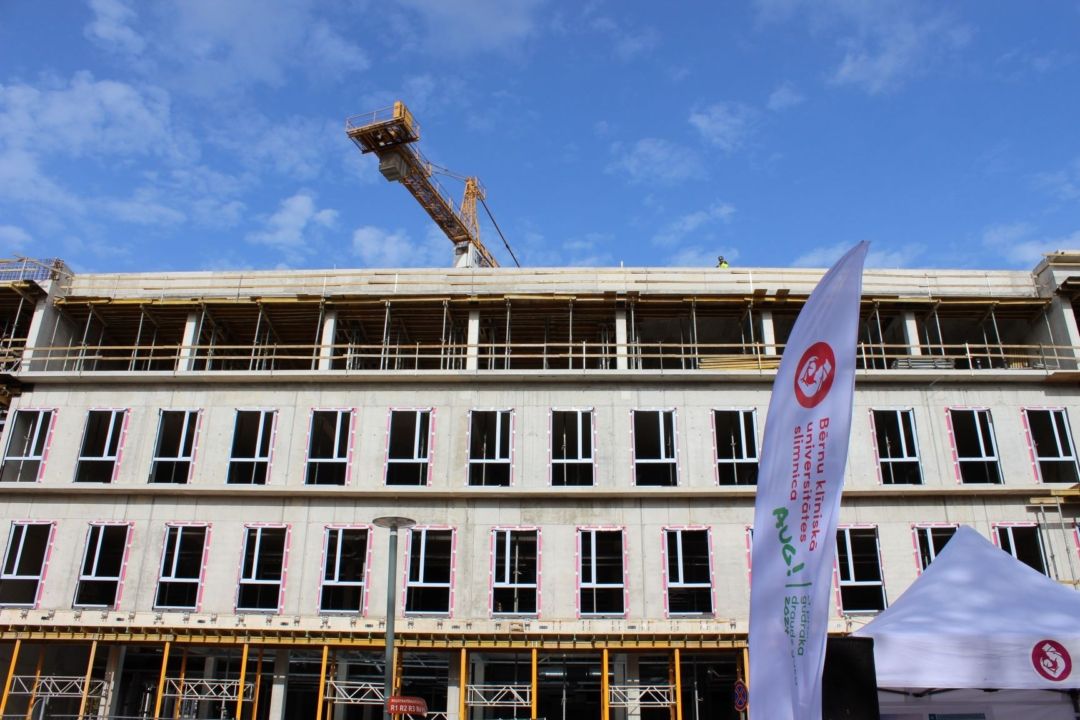 Klātesot Latvijas Republikas veselības ministram Hosamam Abu Meri, Latvijas Republikas finanšu ministrijas parlamentārai sekretārei Karīnai Plokai, Rīgas domes priekšsēdētājam Vilnim Ķirsim, kā arī VSIA “Bērnu klīniskā universitātes slimnīcas” vadībai un būvniecības uzņēmuma “ARČERS” valdei, šodien ēkas augstākajā punktā pacelts spāru vainags, tādejādi simboliski iezīmējot brīdi, kad apjomīgākie ēkas būvdarbi ir paveikti un būvniecība pāriet nākamajā fāzē.