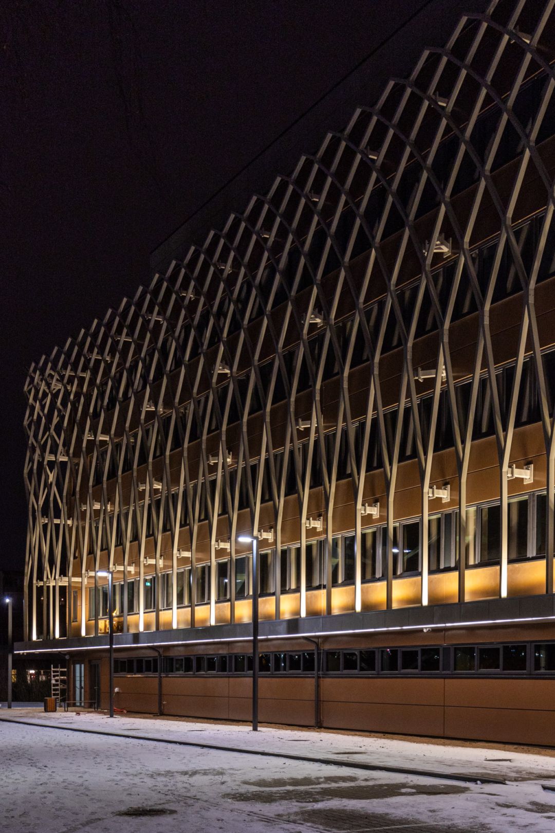 Jaunās ēkas kopēja platība ir 12131,9 kvadrātmetri, tās fasādes apdares risinājumi izvēlēti, respektējot Rīgas Vēsturiskā centra un zemes gabalam apkārt esošo apbūvi. Vizuāli iespaidīgākais ēkas ārējā tēla elements nenoliedzami ir tērauda lentu režģis, kas apvij fasādi līdzīgi kā tīkls. Īpaša uzmanība projektā pievērsta vides pieejamības risinājumiem, tādejādi atvieglojot objekta pieejamību un orientēšanos telpā cilvēkiem ar kustību, dzirdes vai redzes traucējumiem. Uz ēkas jumta izvietoti 702 saules paneļi, kas būs kā alternatīvs, videi draudzīgs elektroenerģijas ieguves veids.