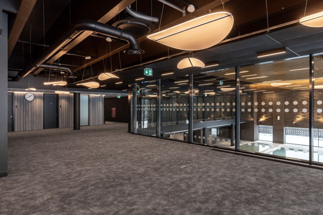Kompleksa 1.stāvā atrodas apmeklētāju ieejas zona, recepcija, trenažieru un fitnesa zāles ar ģērbtuvēm, administrācijas telpas un palīgtelpu zona, kā arī tehniskās telpas baseinu un saunu apkalpošanai. Ēkas 2.stāvs pilnībā atvēlēts ūdens relaksāciju zonai. Plašajā ūdens relaksāciju zonā atrodas džakuzi, trīs saunas, divas tvaika pirtis, bērnu baseins, aukstais baseins, vairākas dušas sadaļas, lielais baseins ar dažādu ūdens masāžu aprīkojumu, kaskādēm un pretstraumēm, ģērbtuves un bāra zona. Atpūtas zonā ir gan ērti zviļņi, gan siltas virsmas, uz kurām apsēsties. Katrā no pirtīm un saunām veidota atšķirīga noskaņa, atšķirīga toņa koka apdare, apgaismojums un aromāti. Īpaša detaļa ir āra terase, no kuras paveras skats uz ezeru, ar džakuzi un baseinu, ko iespējams izmantot visu gadu. Centra 3.stāvā izvietoti 16 procedūru kabineti un klusa relaksācijas zona, kā arī darbinieku telpas un palīgtelpas.